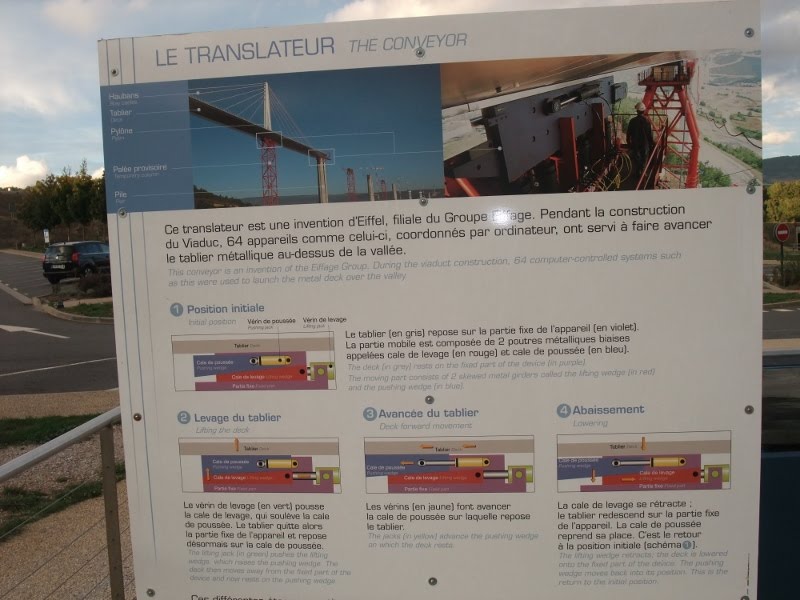 Efter att vi övernattat i Beaune åkte vi vidare mot Millau. Bron är otroligt imponerande. Vi åkte först ner till ställplatsen som ligger centralt i Millau men som vi befarade var det mycket bilar där och de få platser som vi kan stå på var redan upptagna. Tidigare har vi fått tips om att man kan stå på första rastplatsen efter betalstationen till bron. Vi har inte vågat åka ner dit förut eftersom det finns en skylt som säger att det är förbud för lastbilar över 3,5 ton att åka ner dit. Men det visade sig att det är en stor rastplats med särskilt märkta platser för husbilar och bussar.